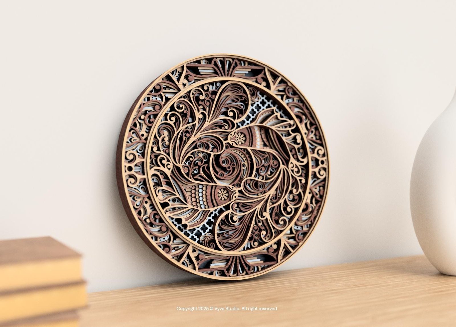 Be the first to review “3D Layered Koi Fish Laser Cut File – Intricate Mandala Wall Art for Digital Download”